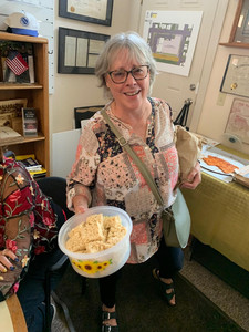 Margie Hefner Welniak displaying the Rice Krispie Treats